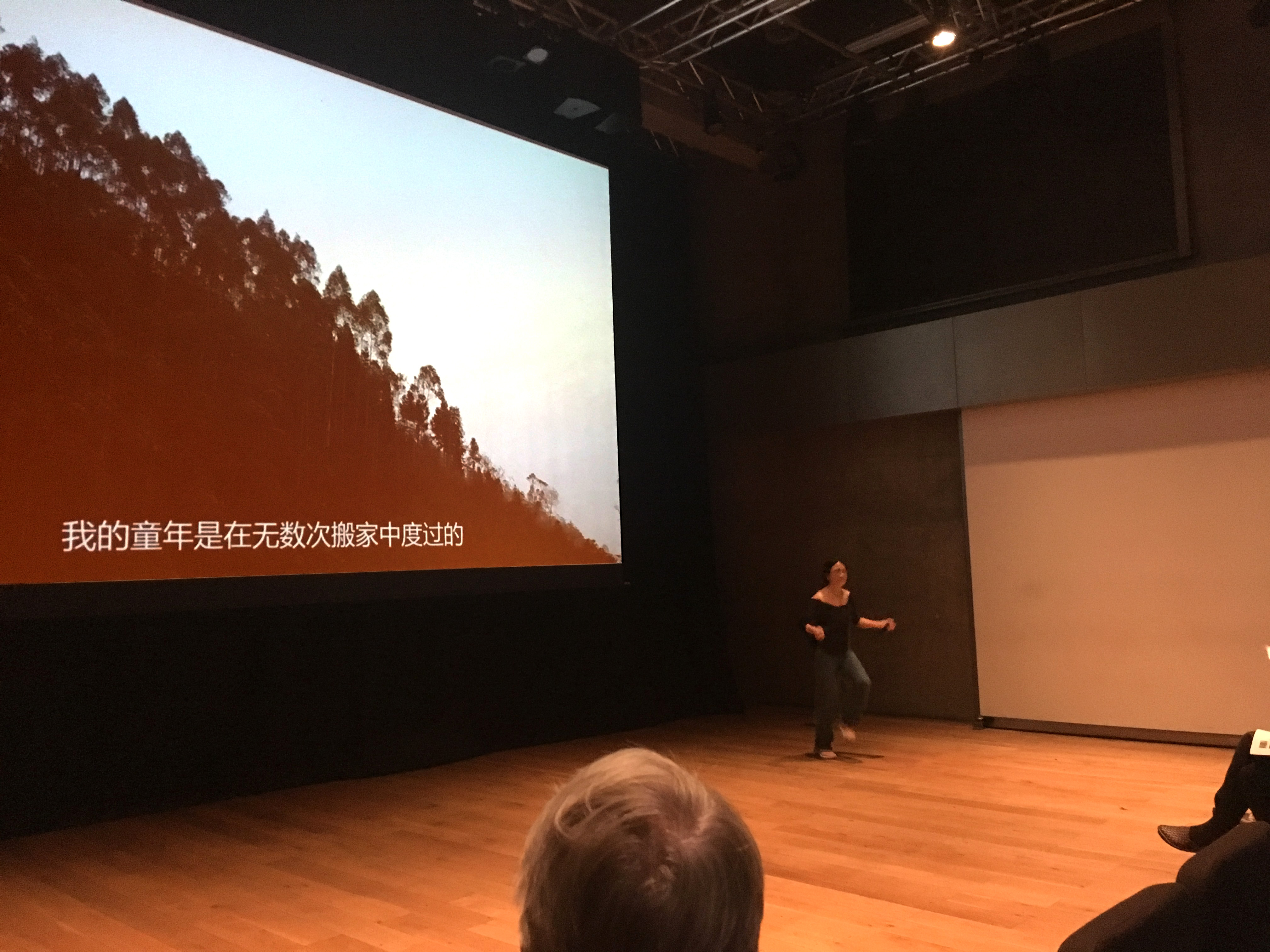 Tehching Hsieh discusses his work with curator Victor Wang at DRAF , ‘Institute of Asian Performance Art’, 2018. (image by Christa Holka)
